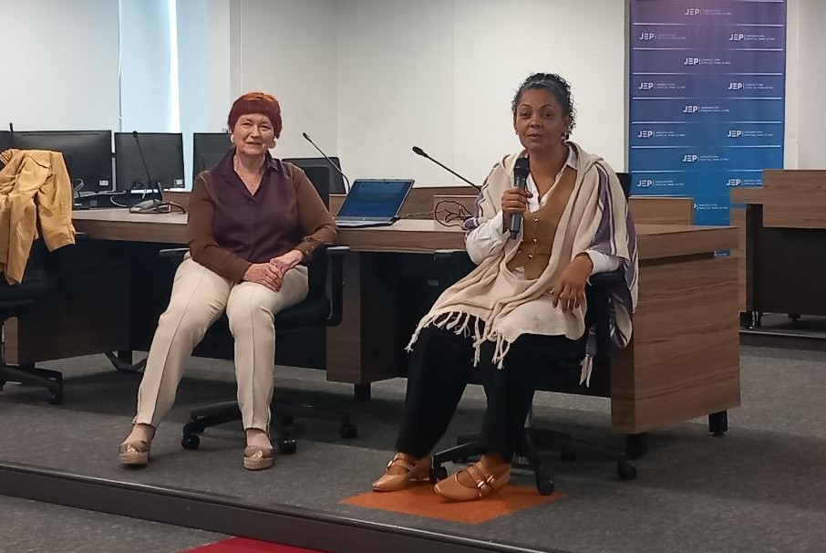 JRR Restorative Justice Expert in action during the event in company of JEP Judge Ana Manuela Ochoa Arias.