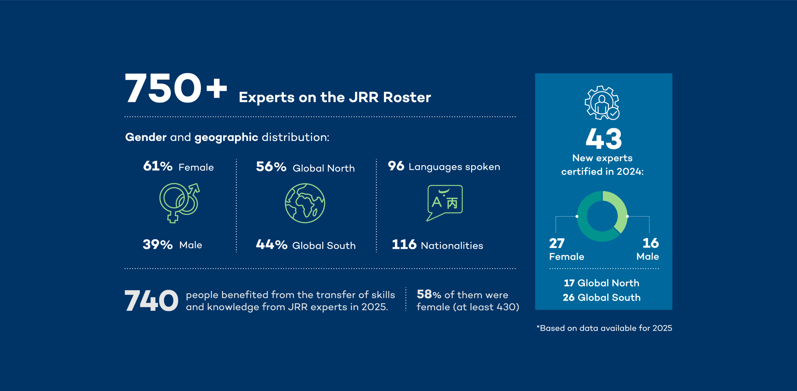 A pool of over 750 justice and human rights experts rapidly deployable upon request to investigate international crimes and serious human rights violations and to enable a holistic, gender-sensitive and inclusive approach to justice.